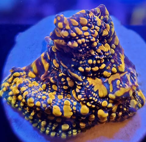 Un superbe chalice LPS aux teintes fruitées et éclatantes, rappelant les nuances d’une baie sauvage. Son relief texturé et ses couleurs intenses en font une pièce de choix pour tout aquarium récifal. Facile à entretenir dans des paramètres stables, ce corail aime une lumière modérée et un léger mouvement d’eau.