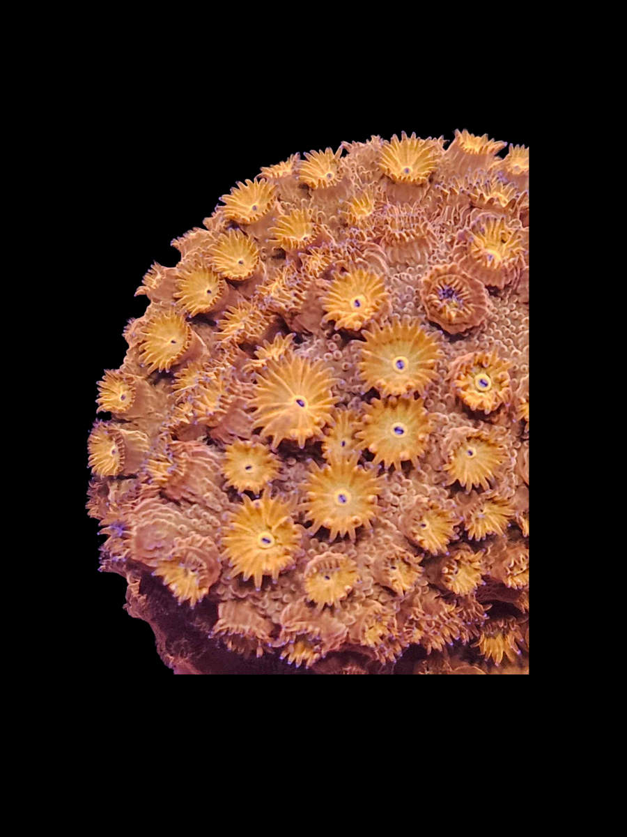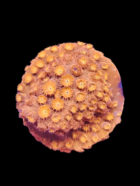 Le Cyphastrea orange est un corail encroutant éclatant, apprécié pour ses polypes orange vif contrastant avec une base rouge, violette ou brun foncé. Idéal pour couvrir les zones rocheuses ou verticales, il apporte une touche vibrante et lumineuse, même dans les coins peu éclairés du bac.
