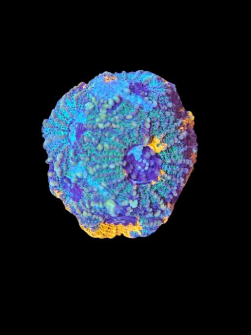 Le Orange Crush Echinata est un chalice LPS d’exception, reconnu pour sa base orange intense parsemée de yeux verts ou jaunes fluo, souvent accompagnés de reflets rouges ou bleutés selon l’éclairage. Sa texture en coupe et ses couleurs éclatantes en font une pièce maîtresse dans tout aquarium récifal.