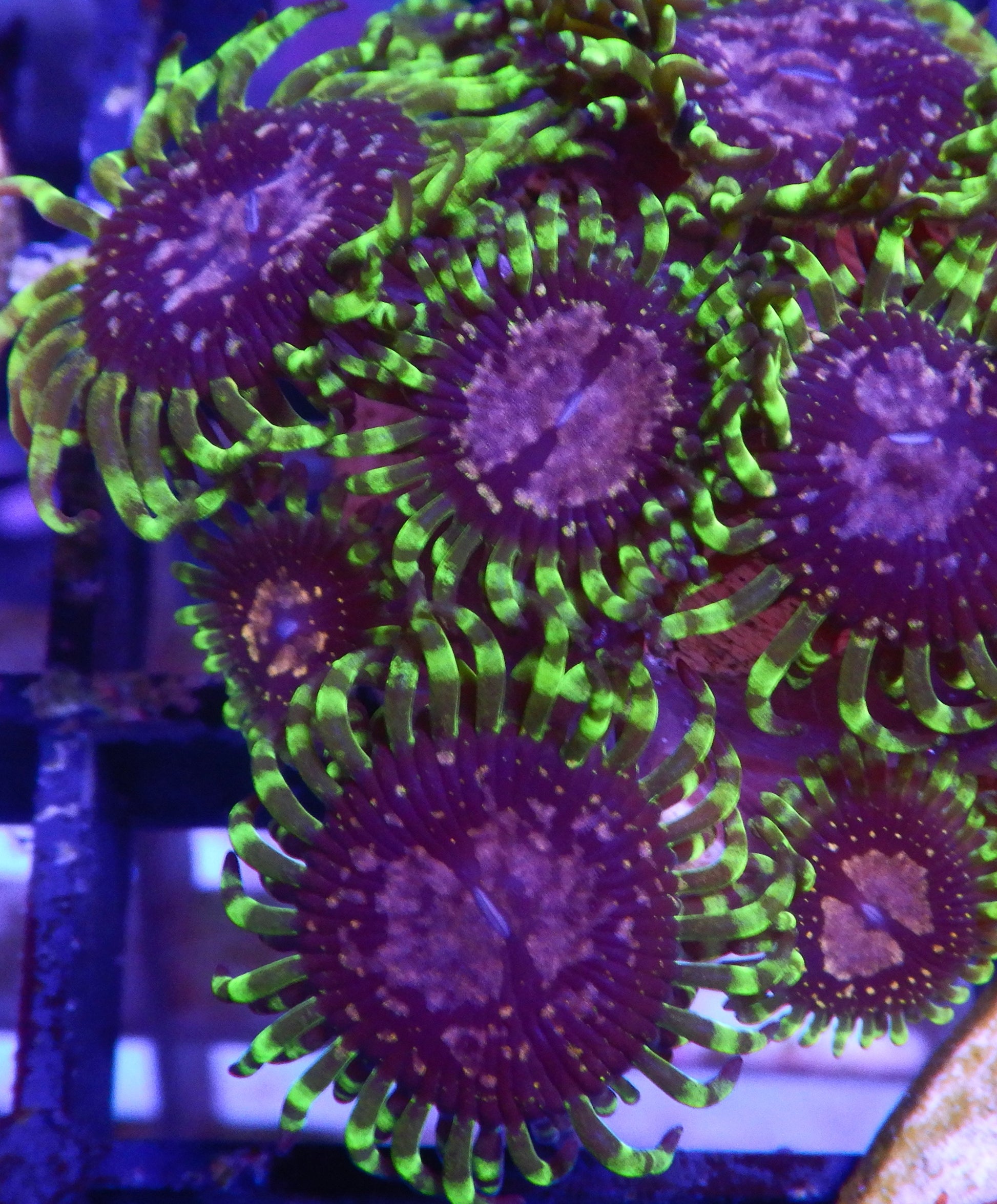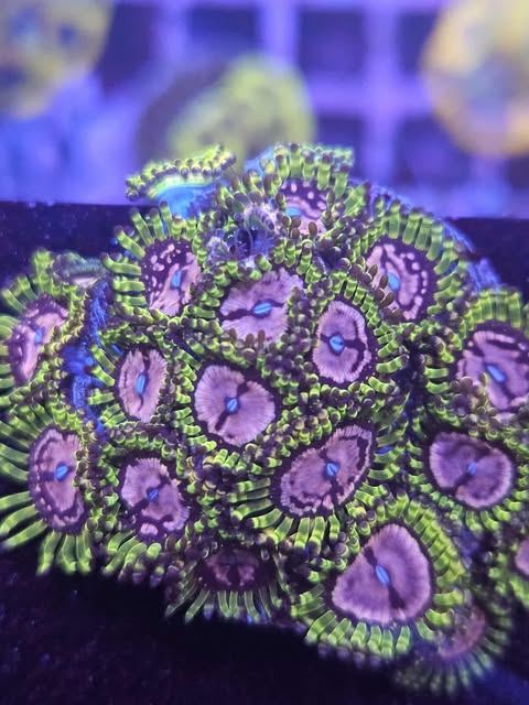 Le Purple Monster Zoanthus est un zoanthide captivant, avec des polypes principalement violets foncés ou pourpres, souvent bordés d’un halo plus clair ou d’un anneau lumineux. Son allure sombre et riche crée une ambiance mystérieuse et élégante dans l’aquarium.