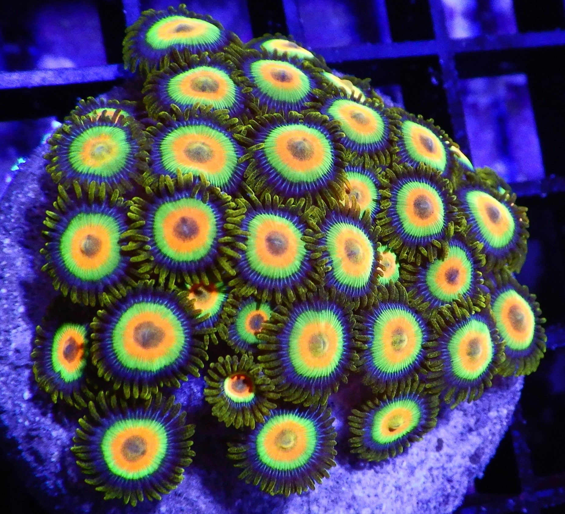 Le Rasta Zoa est un zoanthide éclatant, affichant un mélange de rouge, jaune et vert vif, inspiré des couleurs rasta emblématiques. Ses polypes très colorés apportent une vibration chaude et festive à tout aquarium récifal.