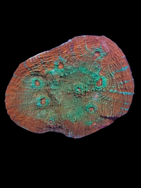 Le Orange Rainbow Chalice est un corail LPS spectaculaire, arborant une base orange vive parcourue de reflets multicolores : rouge, rose, vert fluo selon l’angle et l’éclairage. Sa surface ondulée et ses yeux marqués en font une pièce maîtresse ultra lumineuse, parfaite pour les collectionneurs.