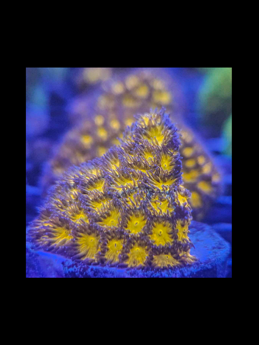 Le Spitfire Leptastrea est un corail dur au motif dense et texturé, avec des polypes compacts aux teintes chaudes et vibrantes, souvent mêlant des nuances de rouge, orange et jaune. Son apparence unique apporte une touche de dynamisme et de couleur intense à tout aquarium récifal.