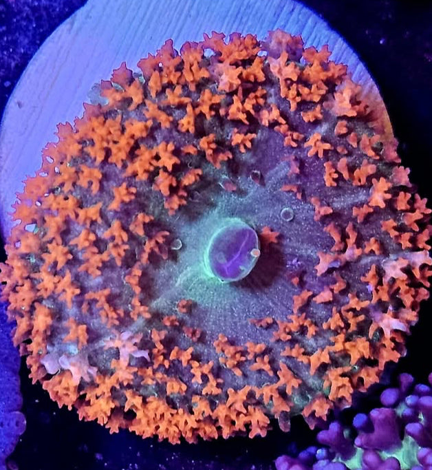 St-Thomas Mush Coral – Un corail mou spectaculaire aux couleurs éclatantes et aux reliefs uniques. Facile d’entretien, il aime la lumière modérée et un faible courant. Idéal pour ajouter une touche exotique et vibrante à ton aquarium récifal.